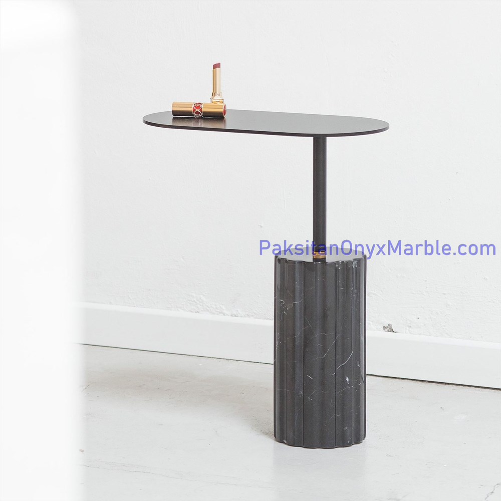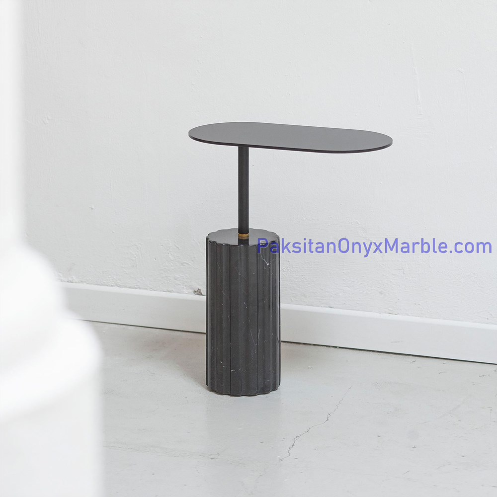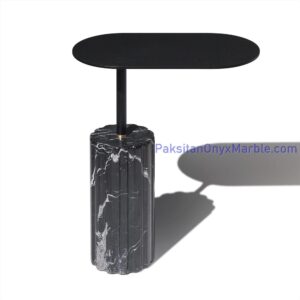Black marble end side tables with an oval design offer versatility, durability, and timeless beauty, making them a sought-after choice for elevating interior spaces with their understated sophistication.