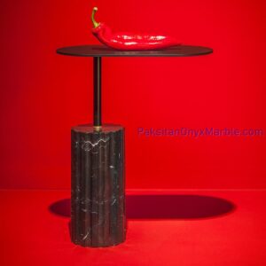 Lighting Support: Placing a lamp on the table not only provides illumination but also showcases the natural veining and beauty of the black marble, creating a warm and inviting ambiance.